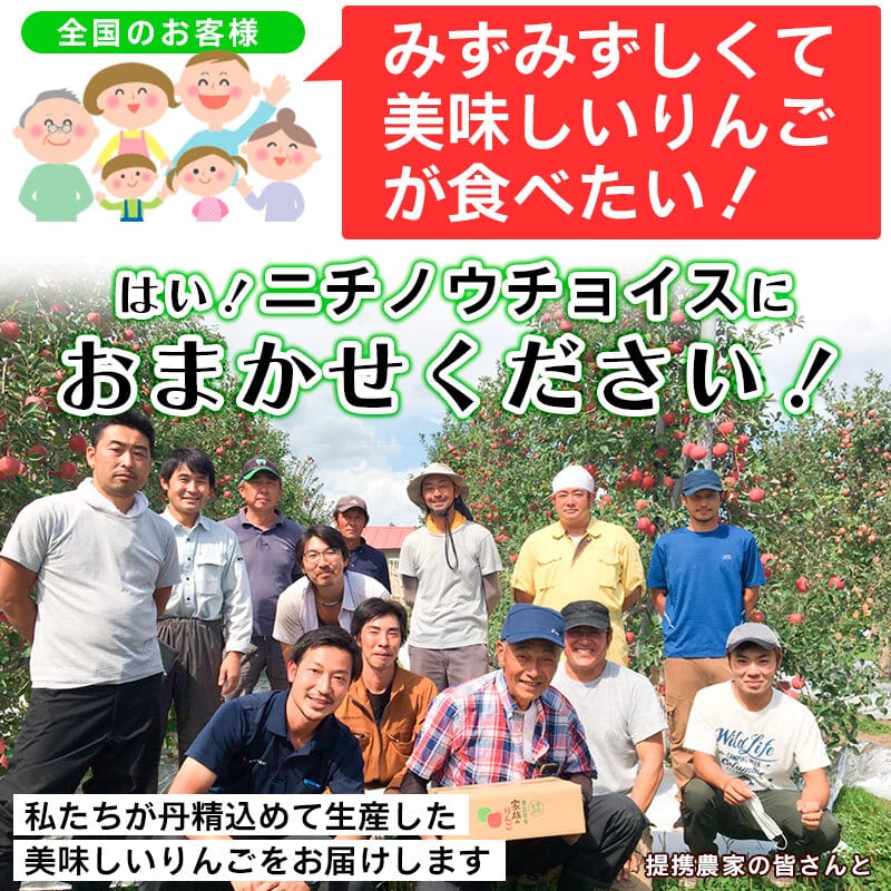 りんごは自然の青果物であり、個体差があること、味の感じ方には個人差があること、また、品種や収穫時期によっても味のバラつきが発生する場合がございます。
